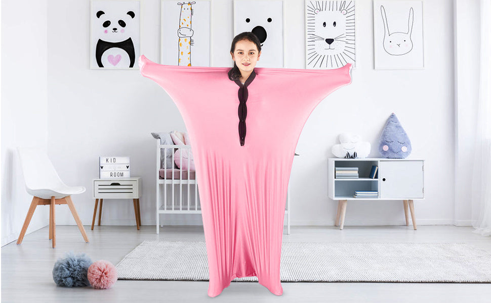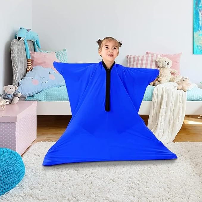 A sensory body sock is a stretchy, breathable fabric sack designed to provide calming deep pressure, and gentle resistance for children. By climbing inside, kids can safely push, stretch, and move their bodies while feeling snug and secure. This soothing compression helps regulate emotions, reduce anxiety, and improve focus, making it perfect for children with sensory processing needs, ADHD, or autism.