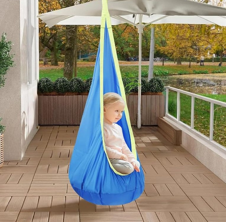 - Anxiety or emotional regulation needs – The cozy, cocoon-like feel of the swing creates a safe space to relax.