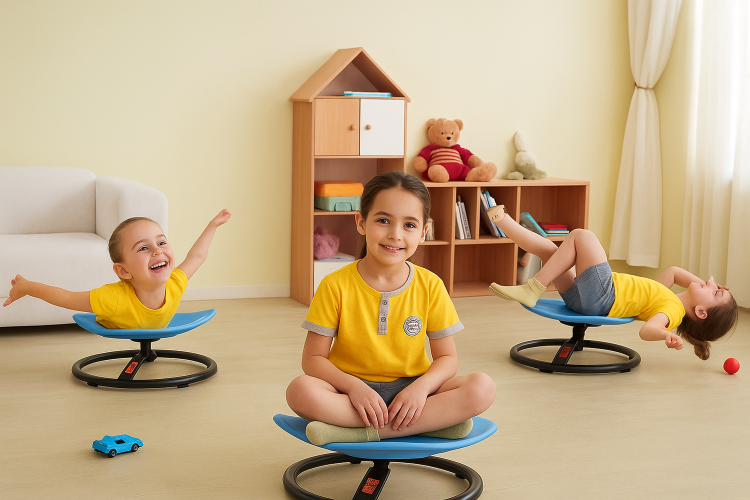 "When your child feels overwhelmed or out of sync, the sensory spinning chair provides the movement their body craves—helping them feel calm, focused, and back in control within minutes."