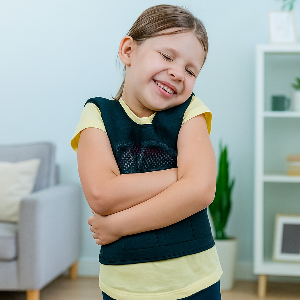 For children with sensory processing challenges, anxiety, ADHD, or autism, this calming effect is transformative. The vest helps to: